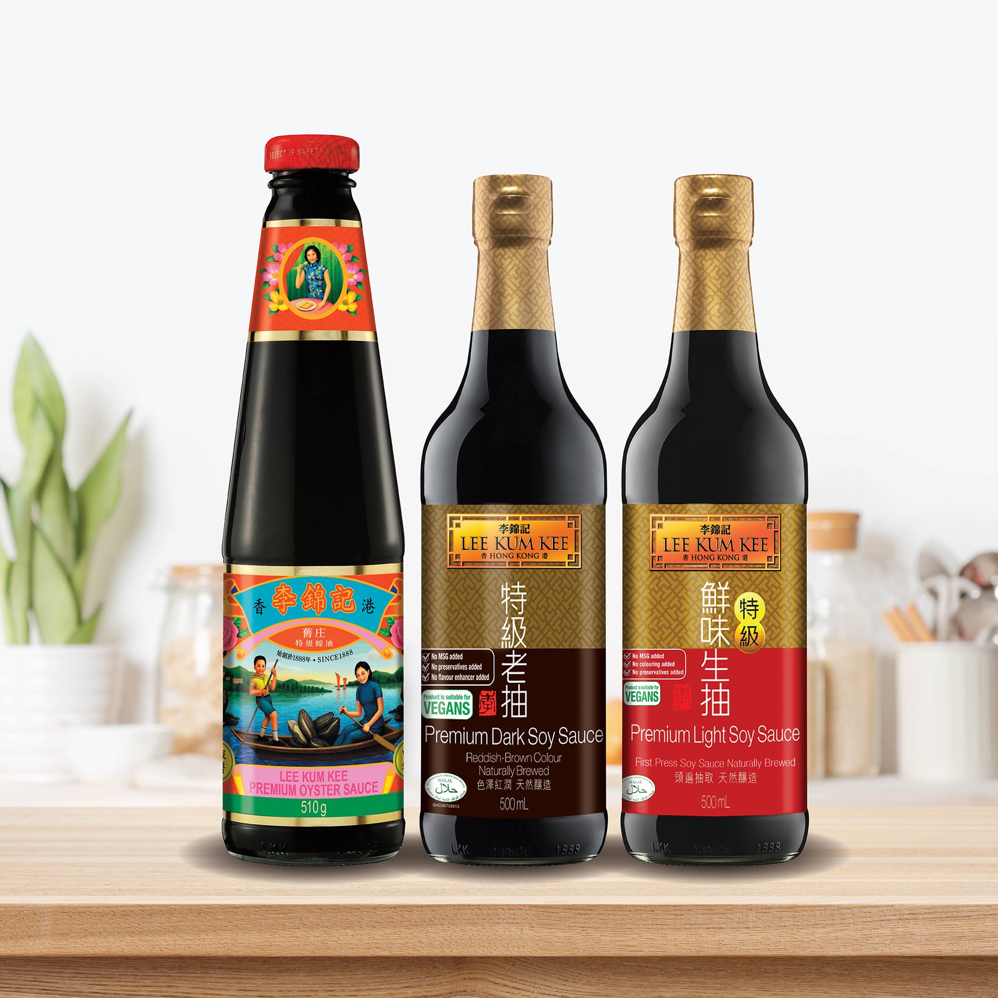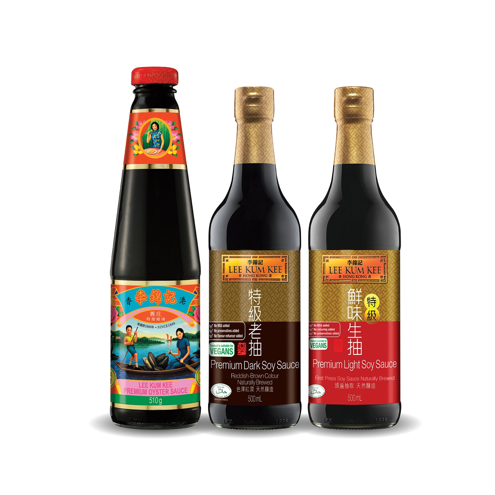 - Vegan-friendly: Premium Light Soy Sauce, Premium Dark Soy Sauce