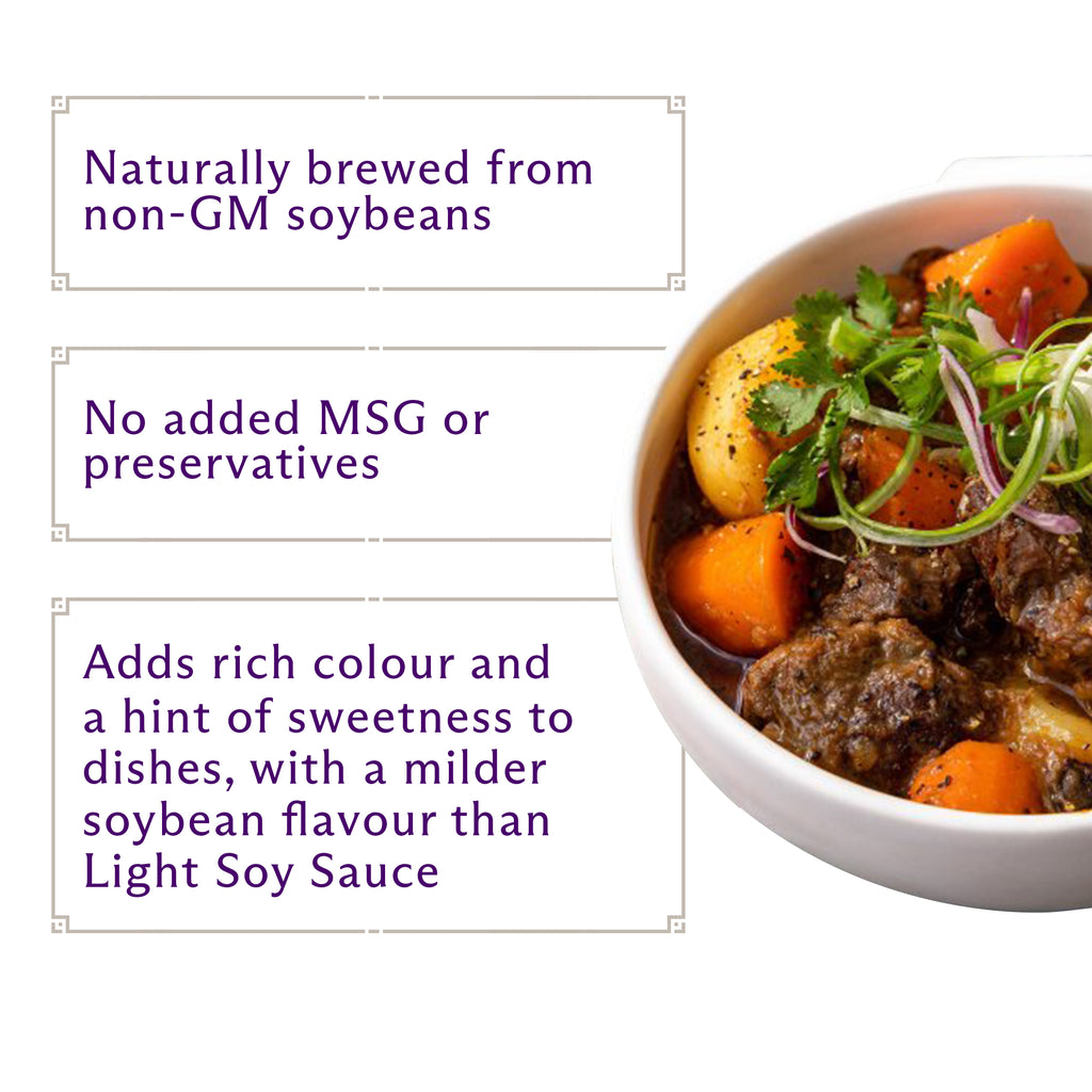 Dark Soy Sauce's full-bodied colour will enhance the appearance of various dishes, use 1 tsp at a time.